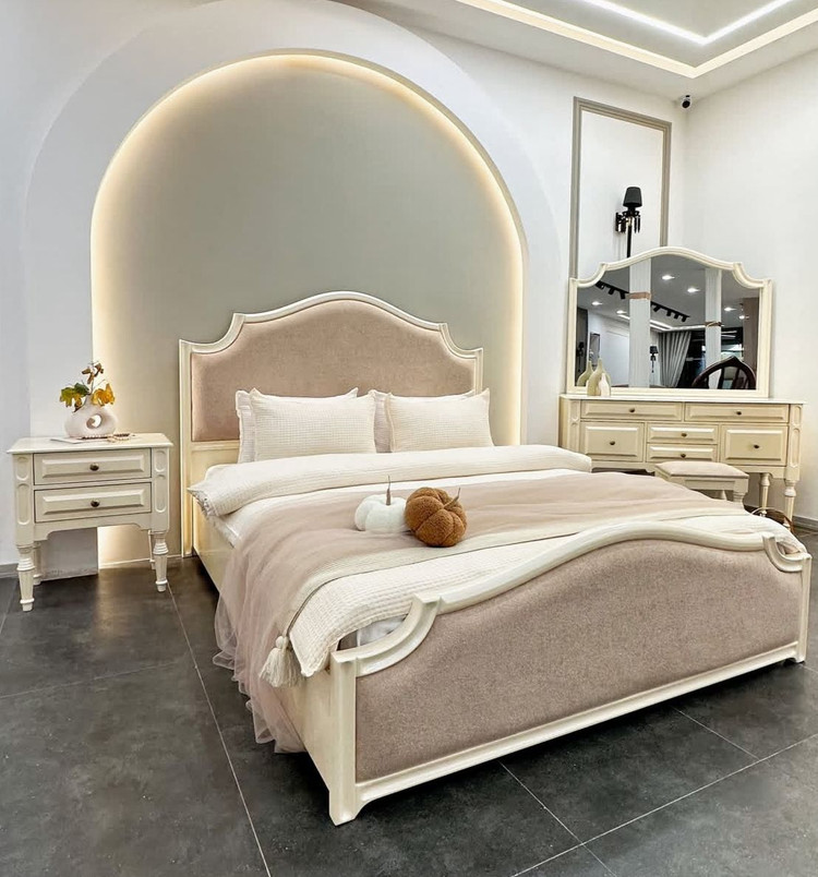 اجزای سرویس خواب: 1 تختخواب دو نفره + 1 پاتختی + میزآرایش و آینه + صندلی میز آرایش