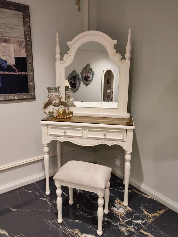اجزای سرویس خواب: 1 تختخواب دو نفره + 1 پاتختی + میزآرایش و آینه + صندلی میز آرایش